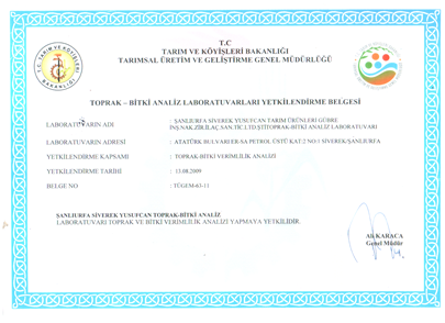 Bu gerçekten hareket eden Yusufcan Tarım Ürünleri toprak tahlil laboratuvarını 2009 yılından itibaren kurmuş, yetkilendirmiş ve ehil mühendisleri ile bölge çiftçimizin hizmetine sunmuştur.